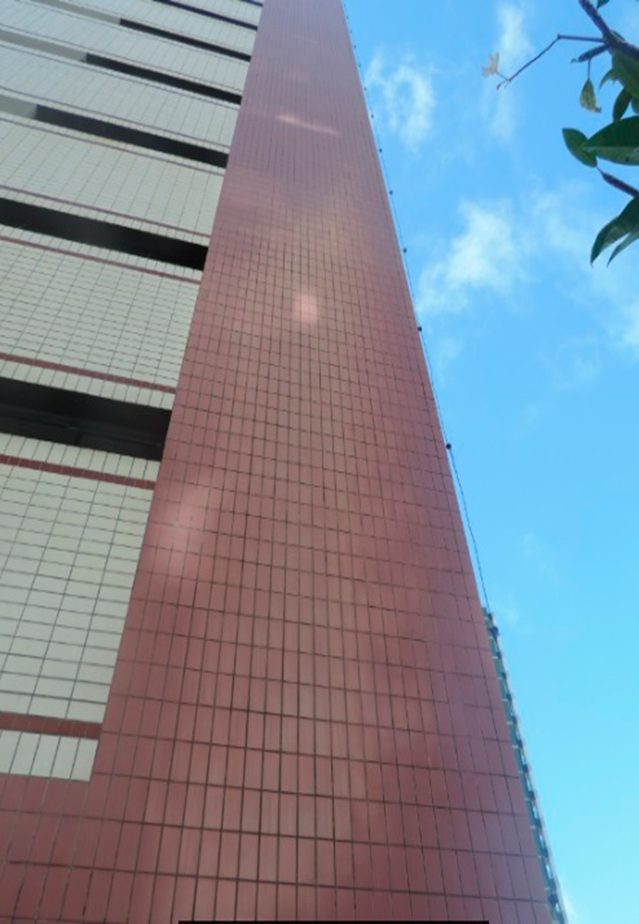 O Edifício Nietzsche celebrou contrato com a WE Engenharia para a realização de operação em Engenharia Diagnóstica, a fim de conhecer a situação de suas fachadas por meio de relatório técnico. O ensaio percussivo, a inspeção de juntas e a vistoria técnica dos componentes das fachadas constataram as seguintes ocorrências: Infiltrações em paredes, tetos e subsolo; ausência de pintura, identificação e acabamento em registros, tubulações e instalações elétricas; cabos expostos e desorganizados; quadros elétricos danificados, obstruídos e fora de padrão; escada de acesso à caixa d’água sem guarda-corpo; fissuras e furos em paredes, forros e fachadas; obstruções de rotas de fuga, halls, antecâmaras e shafts com materiais indevidos e falta de iluminação de emergência; portas corta-fogo com defeitos e fechaduras danificadas; extintores vencidos e medidor de gás sem visor; armazenamento irregular de GLP; cerâmicas e pisos com falhas, descolamentos e trincas; problemas em revestimentos e acabamentos de piscina e esquadrias; afundamentos e descolamentos em rampas; luminárias e caixas de passagem danificadas; tubulações com fixação comprometida e concreto com cobrimento desprendido; fachadas com trincas e desplacamentos; instalações elétricas irregulares em chuveiros e tomadas.